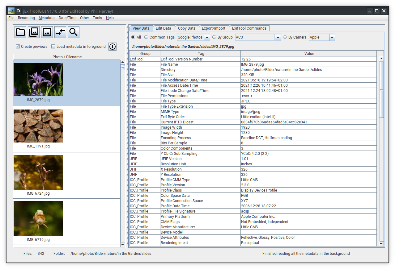 This section shows the integration of the ExifToolGUI1 as a ’containerised’ Application image on Linux. In this case simply the path to the AppImage /home/opt/jExifToolGui-1.20.0-x86_64.AppImage was selected via Select ExifToolGUI.