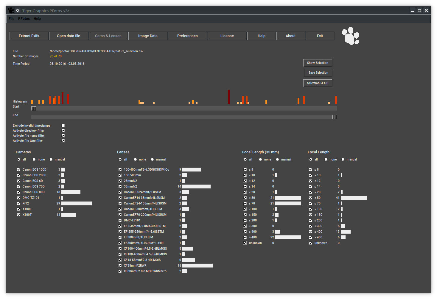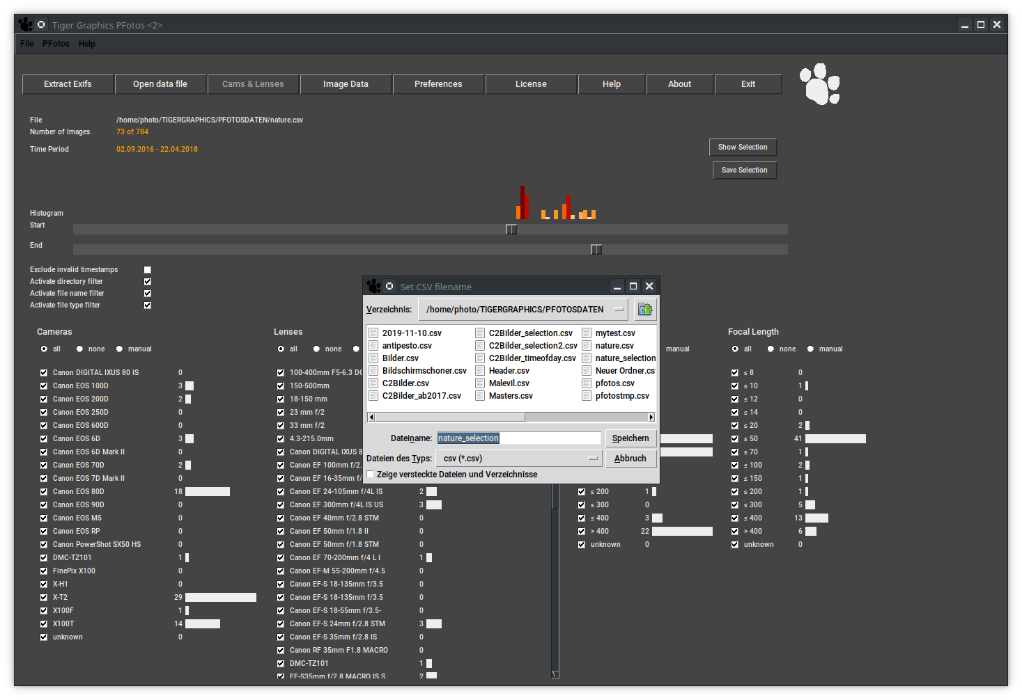 Pressing the button Save Selection opens a file selection window to save the currently generated selection of images to a PFotos data file for later and special use.