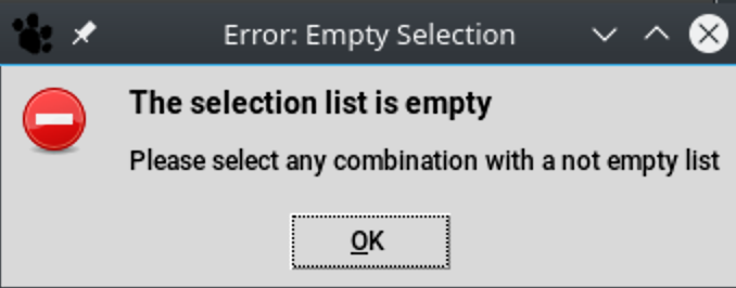 If a selection is empty, an error message is displayed and the operation is cancelled.