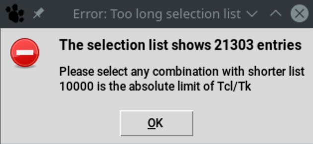 If a selection contains more than 10000 images, an error message is displayed and the operation is cancelled.